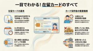 在留カードとは、日本に中長期間在留する外国人に対して交付されるカードです。 在留カードには、氏名等の基本的身分事項や在留資格・在留期間が記載され、顔写真も貼付されています。 在留カードとはどのようなものなのかを判りやすく […]