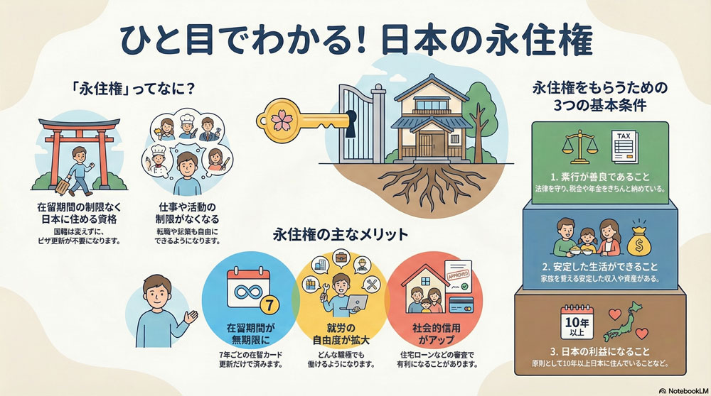 「収入」と「公的義務の履行」は、永住許可申請において不許可となる原因の多くを占める最も重要なポイントです。